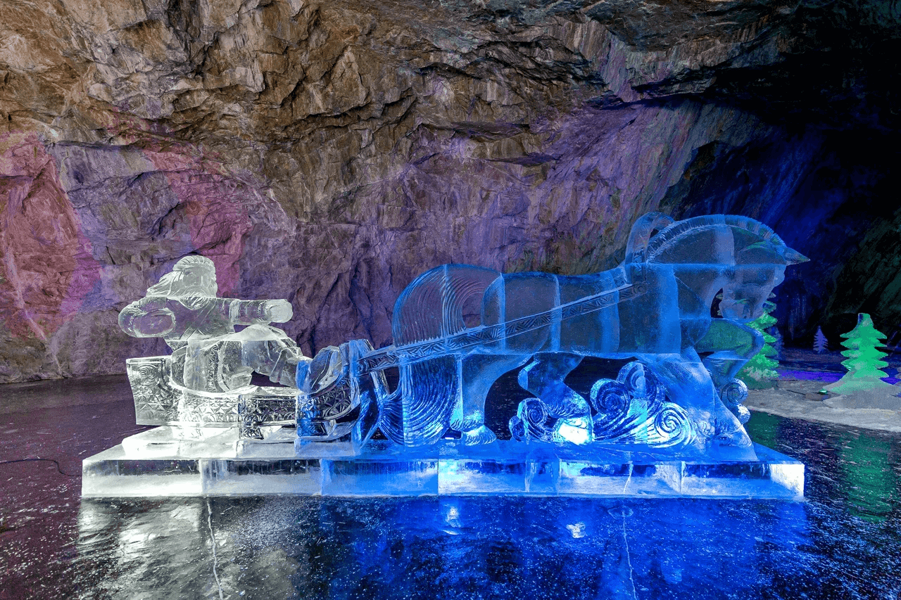Демонстрация ледовых скульптур, выполненных из льда, извлечённого из подземного озера. Если зима порадует нас морозными днями, фестиваль распахнёт свои двери …