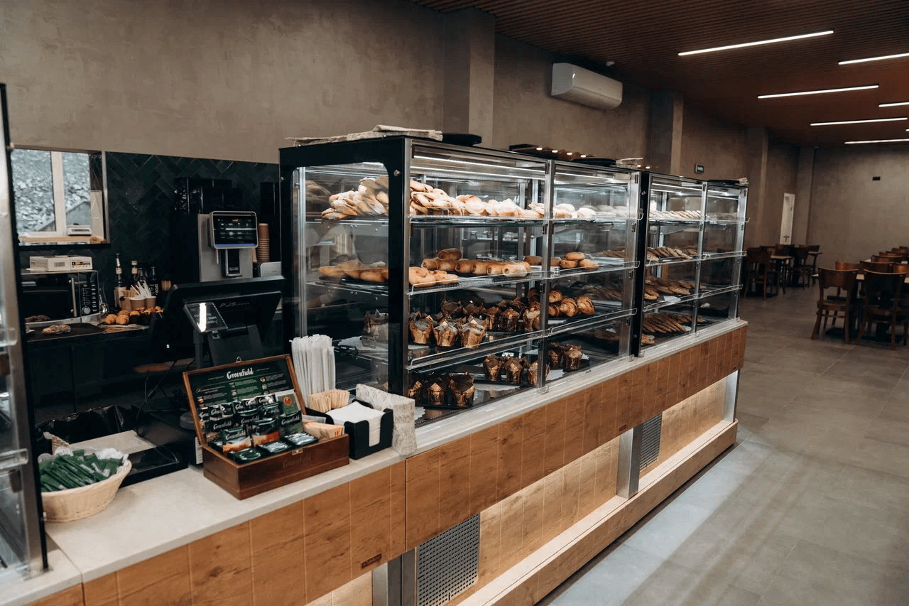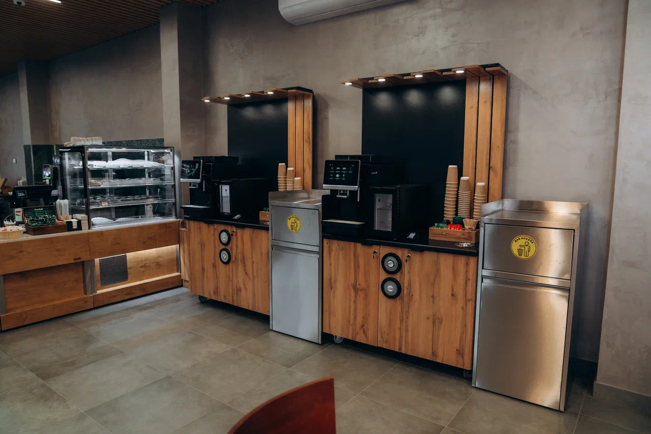 В кафе есть возможность как взять питание с собой, так и расположиться на комфортабельных местах за индивидуальным столиком.